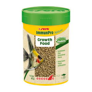 Sera ImmunPro Nature, the ultimate growth food specially formulated for all ornamental fish measuring above 4 cm (1.6 in.). This food combines probiotics, functional ingredients, and high-quality protein to promote rapid growth, robust development, and stunning coloration.