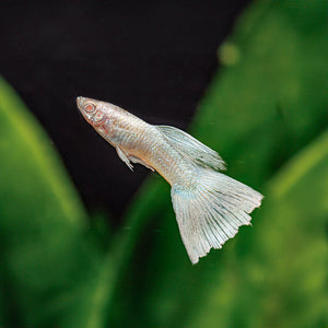 Albino Full Platinum Guppies are a stunning livebearer variety with solid white bodies and bright red eyes from the albino gene. Like other guppies, they thrive in stable water conditions (around 75–82°F and a pH of 7.0–8.0) and accept a wide range of foods, from flakes and pellets to live or frozen treats. They’re very easy to keep and breed, often giving birth to dozens of fry at once, so it’s best to keep them in small groups or with plants to give the young fish hiding spots. Their active, peaceful nature and low care needs make them a perfect choice for both new and seasoned aquarium hobbyists.