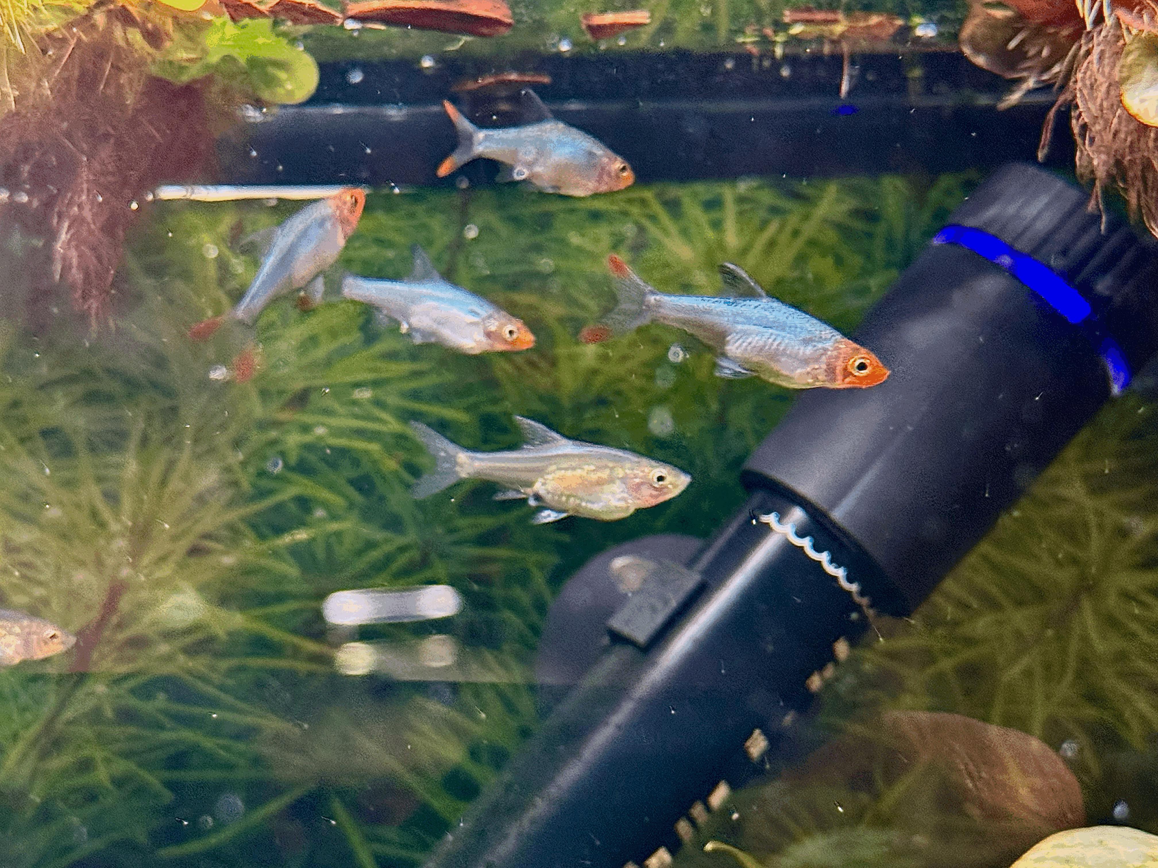 Feeding Rummy Nose Rasboras is a delight. Being naturally omnivorous, they enjoy a diet of small live foods such as baby brine, Daphnia, Blackworms, Bloodworms, and scuds. To ensure a balanced and nutritious diet, we supplement their meals with a mix of Northfin Veggie, Community, and Bug Pro.