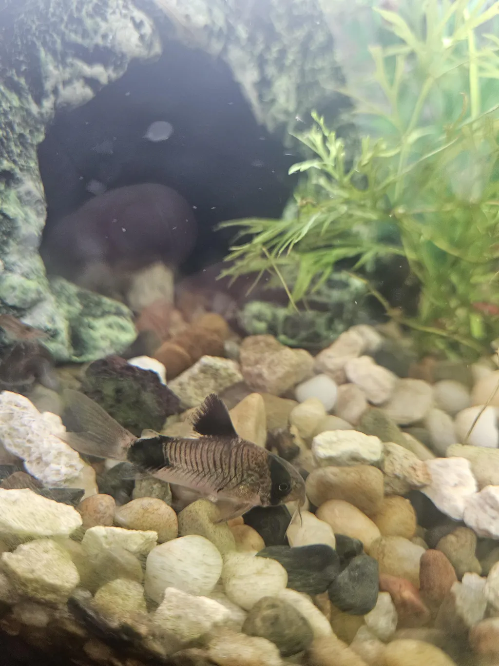 Panda Cories are very peaceful and do best when kept in groups of 6 or more. Like most Corydoras, they spend most of their time at the bottom of the tank scavenging for food. A soft sand substrate is ideal to protect their bellies since they like to sift through substrate while they search for food.