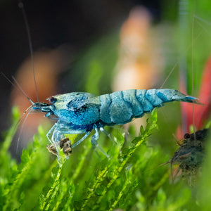 The blue bolts that we sell all have great coloration and have varying levels of blue and white. In the past, Taiwan Bees were considered some of the hardest to keep and breed pet shrimp. Between 2009 and 2014, hobbyists stabilized the Taiwan bee shrimp line giving it more stability in the aquarium. This was achieved by adding in new genetic pools making the Taiwan bee shrimp much easier to keep and breed. For a hobbyist ready to take their hobby to the next level, these shrimp are a great place to start.