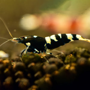 You will receive Black pinto shrimp around half an inch to an inch in size. The Black Pinto shrimp has a unique pattern and color due to its unique genetics. Pinto shrimp are bred my mixing Taiwan bee shrimp and tiger shrimp to create a tibee shrimp. Once you get your tibee shrimp you can continue breeding those offspring with Taiwan bees to create what is called a taitibee. At this stage, you will start to see the pinto patterns develop. The three main categories of pintos are zebra, fancy, and spotted head. You can breed for the pattern style you like the most.