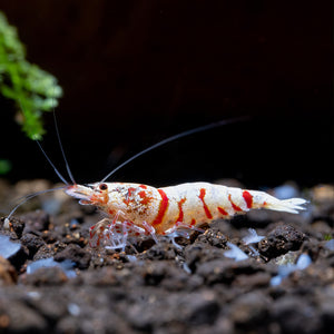 Red fancy tiger shrimp are a mix between tiger shrimp and crystal red shrimp. We keep these freshwater shrimp at the parameters below. In our experience, these shrimp are very hardy and have done well for us. Through importing these guys, we have lost very few. The red fancy tiger is a must-have for all shrimp hobbyist. The contrast between the red and white is very appealing. They are a great change from the typical red and white patterns found in crystal red shrimp.