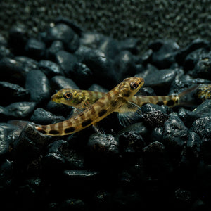 The Thuttinjet Stone Loach (Nemacheilus stigmofasciatus) is rare and was only recently introduced to the hobby. Even with that, it’s been easy for us to keep and it accepts most foods. This loach is marked by a thin black line that runs down its side like a dotted roadway. It has a mottled pattern similar to a Yo-Yo Loach, with small “Y” and “O” shapes. The face is rounded, a bit like a Siamese Algae Eater.