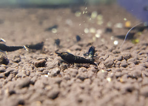 It is great to be aware of the fact that all Taiwan Bee shrimp can be kept in the same tank with out risk of hybridizing. All Taiwan Bee shrimp share similar genetic lines so they will produce shrimp that look similar to the parents. Red King Kongs, Red Pandas, Black King King Kongs, Black Pandas and Blue Bolts can all be kept in the same aquarium.