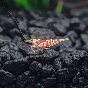 Red fancy tiger shrimp are a mix between tiger shrimp and crystal red shrimp. We keep these shrimp at the parameters below. In our experience, these shrimp are very hardy and have done well for us. Through importing these guys, we have lost very few. The red fancy tiger is a must-have for all aquarium shrimp hobbyists. The contrast between the red and white is very appealing. They are a great change from the typical red and white patterns found in crystal red dwarf shrimp.
