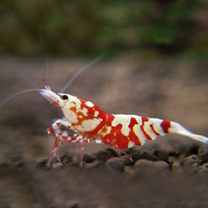 Red fancy tiger shrimp are a mix between tiger shrimp and crystal red shrimp.  We keep these shrimp at the parameters below. In our experience, these shrimp are very hardy and have done really well for us. Through importing these guys, we have lost very few. The red fancy tiger is a must have for all aquarium shrimp hobbyist. The contrast between the red and white is very appealing. They are a great change from the typical red and white patterns found in crystal red dwarf shrimp.