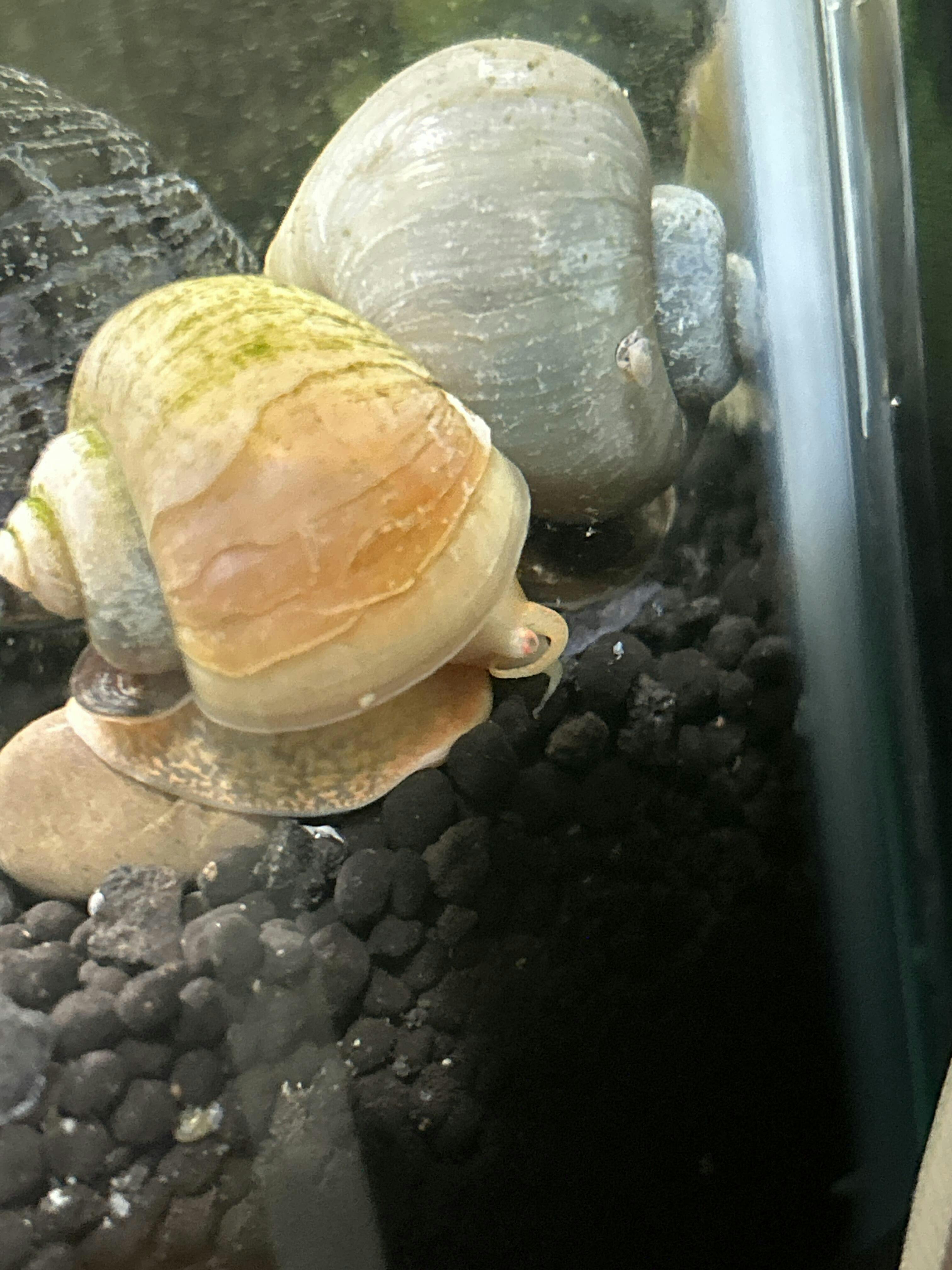 Mystery snails have a large appetite and will gladly clean up any leftover food in an aquarium. They can actually breakdown food much quicker than shrimp through digestion. This is why we believe that snail poop is actually beneficial to a shrimp’s diet. Therefore, these snails are providing clean up and eventually natural food.