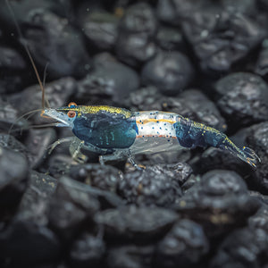 Carbon rili shrimp were one of the first dwarf shrimp our founder, Robert Lupton, had ever bred before starting Flip Aquatics. Therefore, these shrimp play a special part in our business and have additional value and meaning to our company. Carbon rili shrimp have a distinct black coloration with a clear midsection. They often times have spots of black and blue throughout the shrimp. The carbon rili line of shrimp still has a long way to go as far as breeding true since the offspring range from solid black to clear to carbon rili patterns. So, it is good to point out that they do not always produce the typical rili pattern (solid head and tail with a clear midsection). The carbon’s have proven to be hardy which makes them an alternative aquarium shrimp to cherry shrimp for a beginner.