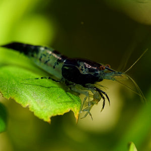 Carbon rili shrimp were one of the first dwarf shrimp our founder, Robert Lupton, had ever bred before starting Flip Aquatics. Therefore, these shrimp play a special part in our business and have additional value and meaning to our company. Carbon rili shrimp have a distinct black coloration with a clear midsection. They often times have spots of black and blue throughout the shrimp. The carbon rili line of shrimp still has a long way to go as far as breeding true since the offspring range from solid black to clear to carbon rili patterns. So, it is good to point out that they do not always produce the typical rili pattern (solid head and tail with a clear midsection). The carbon’s have proven to be hardy which makes them an alternative aquarium shrimp to cherry shrimp for a beginner.