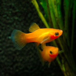 The Sunset Platy is a hardy, peaceful livebearer that’s great for beginners. They grow to about 2-2.5 inches and are best kept in groups, with one male for every two females to help reduce stress. Their bright orange and red gradient with neon highlights gives them the look of a tropical sunset, making them really stand out, especially in planted tanks! We hold each platy for at least two weeks before shipping, giving them expert care so they are healthy and ready for your aquarium!