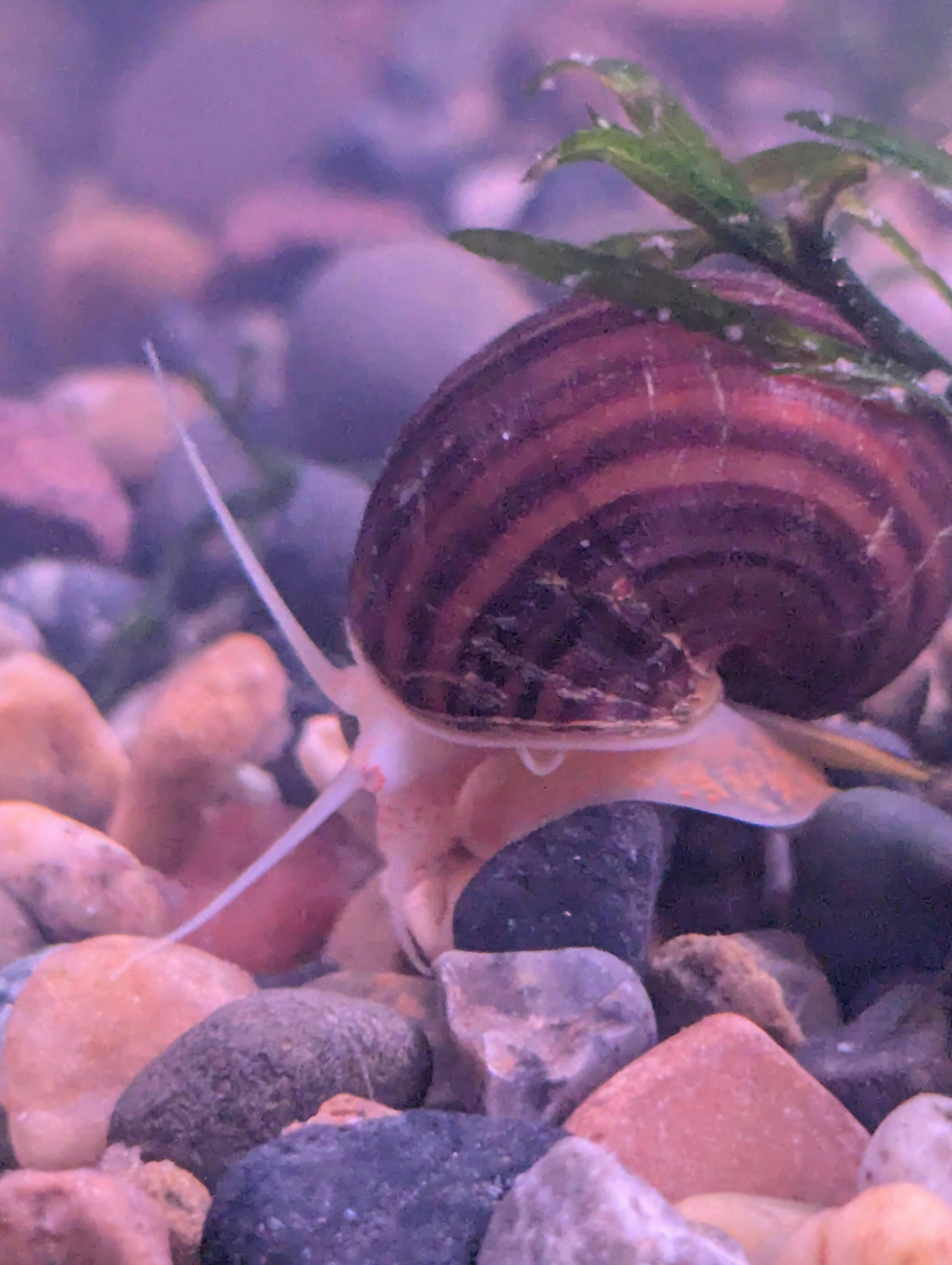 The Magenta Mystery snail is yet another beautiful snail from the Ampullariidae family. While it has a white body, this snails shell can range in color from almost brown to a subtle violet or light purple hue. The variation in shell color makes this a great mystery snail for selective breeding and creating nice purple variations!