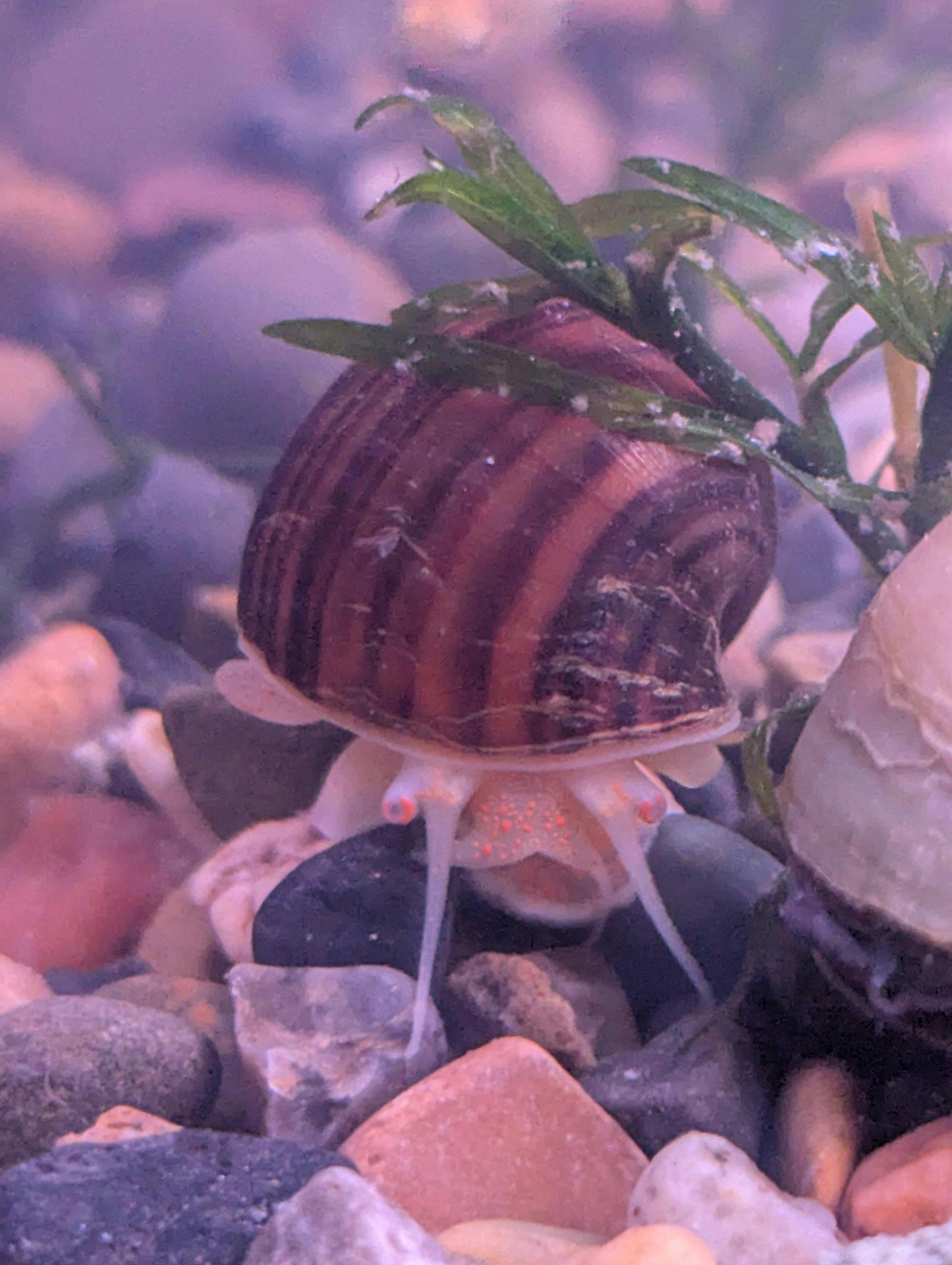 We use these beautiful snails to help keep our aquarium cycled as we add and take shrimp out of the tank to sell. They produce a fair amount of waste which helps keep beneficial bacteria. This bacteria is crucial for processing waste out of the water (also known as the nitrogen cycle).