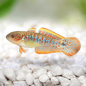The Peacock Goby (Gudgeon) is a gorgeous small fish in a rainbow of colors. They are in full color even when not breeding. They only grow to about 3 inches. They inhabit shallow heavily vegetated slow-moving streams with submerged branches, roots, or leaf litter. Black gravel will have them show off their best colors. They are active fish that look great in a small group. They prefer temperatures 72-78o F. They originally came from Papua New Guinea with these having been captive-bred.