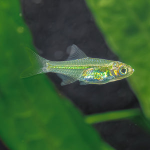 The Green Kubotai Rasbora, Microdevario kubotai, are a bright green color uncommonly seen in freshwater fish. In aquariums with dark substrate and lots of places to hide these fish color up greatly. These rasboras are great additions to any size tank especially nano tanks due to their small size.