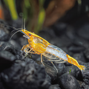 Orange Rili Neocaridina shrimp are the orange variety of rili shrimp which means they have an orange carapace, a clear midsection, and an orange tail. These beautiful shrimp were developed from Orange Pumpkin Neocaridina, and their stunning coloration and unique patterns provide a vibrant pop of color to any shrimp tank.