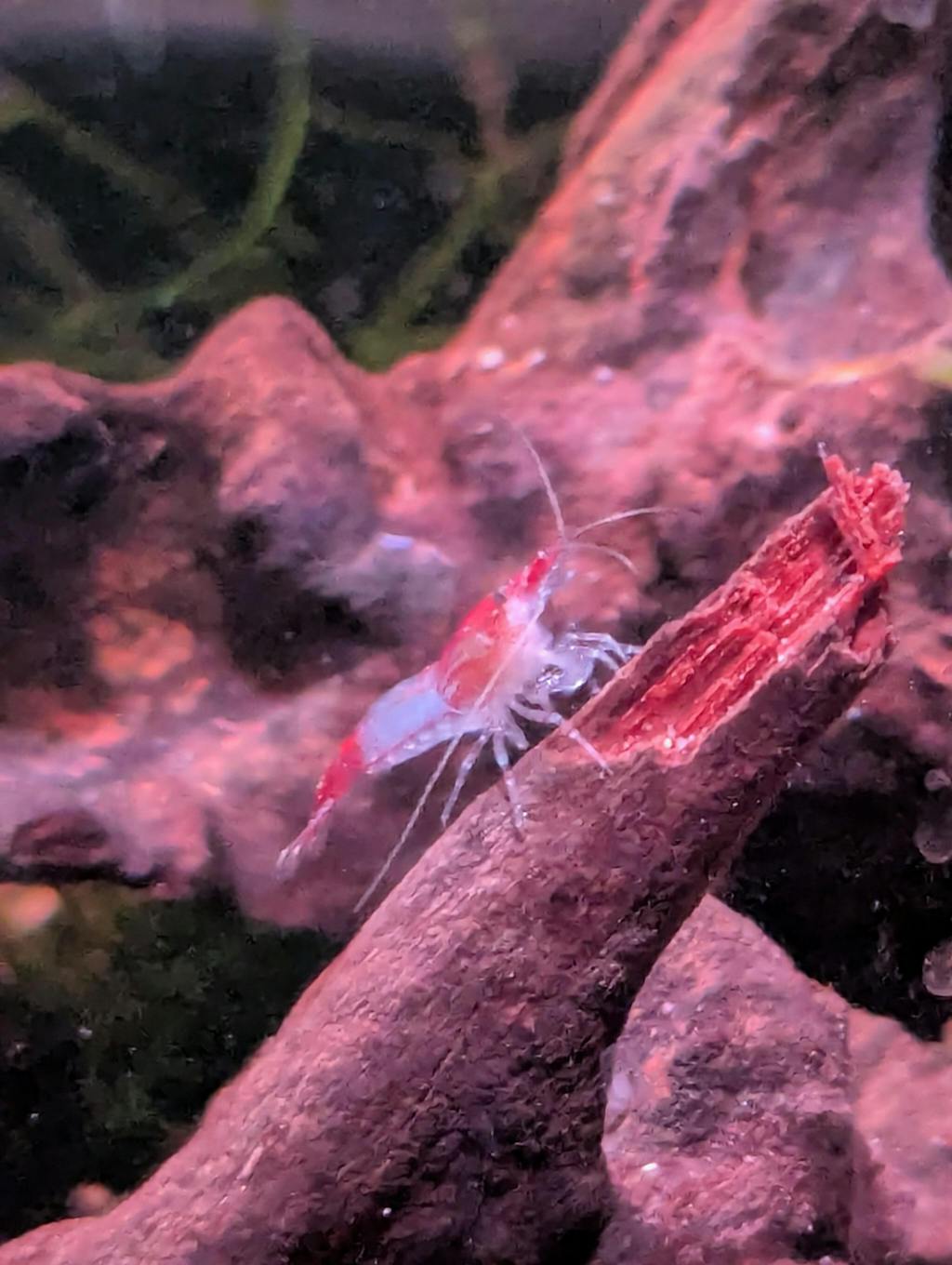 Red Rili shrimp have the rili pattern (color in the head and tail with a clear midsection). The Red Rili shrimp has red coloration like the Cherry shrimp.
