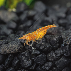 Orange Sunkist Shrimp are great beginner aquarium shrimp and feature a vibrant orange coloration. They are very hardy shrimp that we keep in our shrimp room. Orange Sunkist Shrimp is the name most hobbyists use for all shrimp with a bright orange hue. While most Orange Sunkist pet shrimp look similar, they come from several different genetic lines and backgrounds. Our Orange Sunkist shrimp have a fantastic orange color and their line comes from high-quality breeding stock. They are almost solid orange, while some can show the rili pattern. The care for Orange Sunkist Shrimp is typical of most Neocaridina species. They do not require special attention and tend to be accepting of a multitude of water parameters