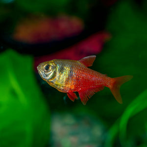 The Flame Tetra can reach sizes of about 2 inches. They are pretty peaceful and can be housed with a variety of community fish. Although, we would not recommend keeping them with shrimp. They prefer small live foods so baby shrimp would become an easy target.