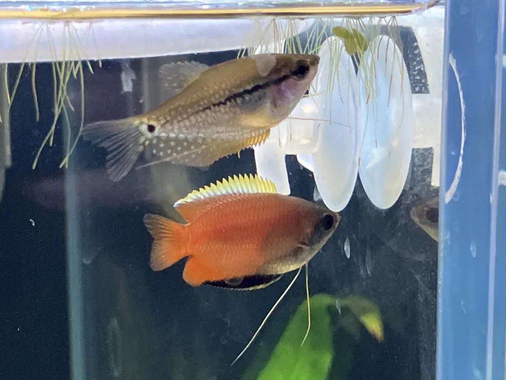 Just got my pearl yesterday! Came alive and healthy. At about 2 inches and coloring up nicely he or she is in a busy tank and doing well. Was really curious because I have two adult honey gouramis in the tank male and female and did not know how they would do. So far they are all buddies. The pearl is shy and taking some cover by the surface in between swimming around. The honeys are super nice come and check on it. It’s eating well and getting more comfortable by the hour. Thanks Flip!