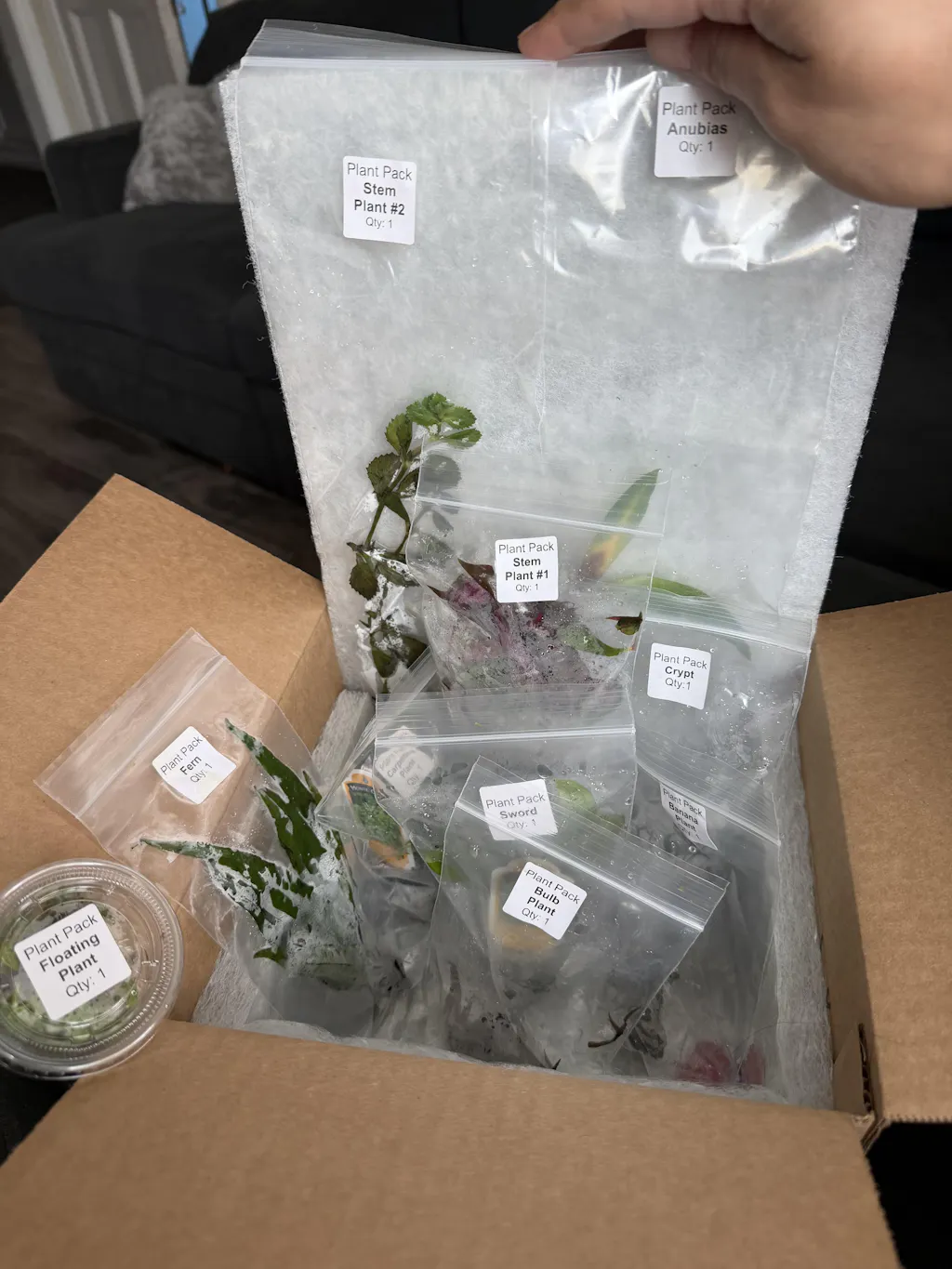 Each Beginner Aquarium Plant Pack includes a diverse selection of aquatic plants, chosen to provide a dynamic and visually appealing aquatic environment. While specific plant varieties may vary based on availability, rest assured that we handpick each plant to ensure it meets our high-quality standards. Please note that we are unable to accommodate specific plant requests for this pack, as it is designed to offer a delightful surprise and variety to your aquatic landscape.