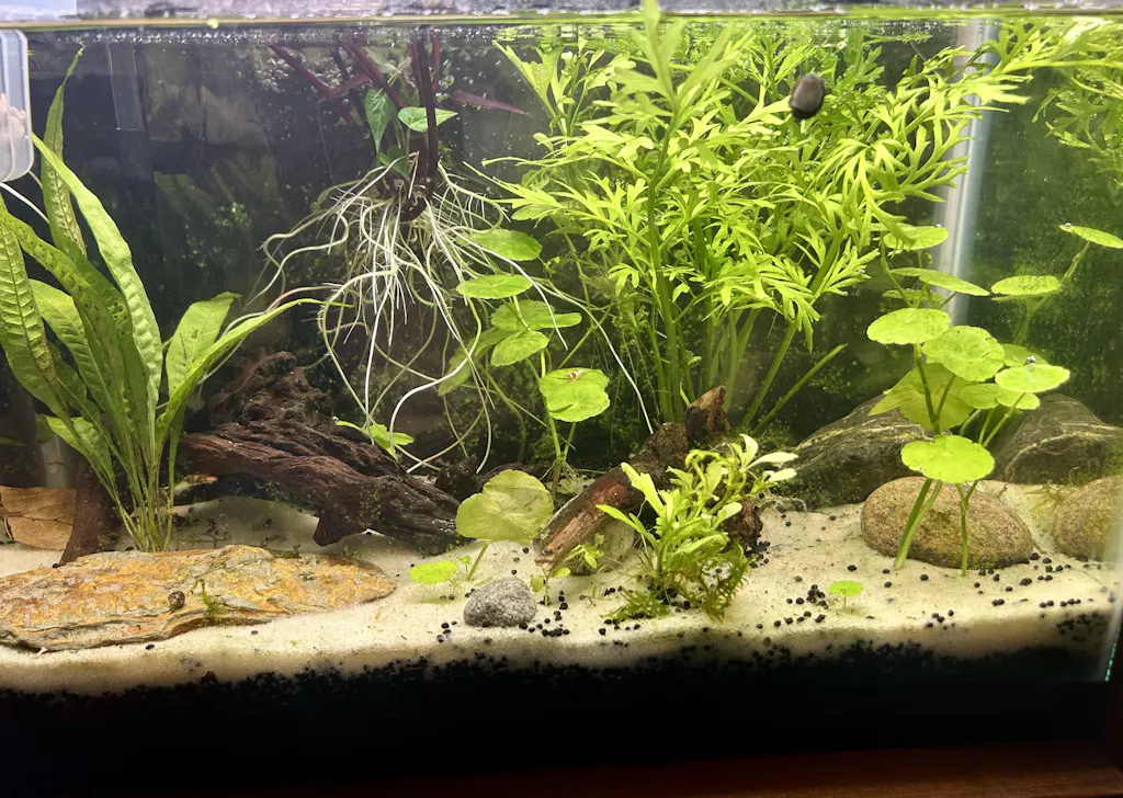 Perfect for adding height and texture to your aquarium, Brazilian Pennywort can be used as a background plant or to create shaded areas for fish and shrimp. Brazilian Pennywort has delicate trailing stems that can even grow above the waterline, adding a natural, overhanging effect to your aquascape. With minimal maintenance required, this aquarium plant is a beautiful and functional addition that promotes a healthy ecosystem while enhancing the visual appeal of your aquatic setup.
