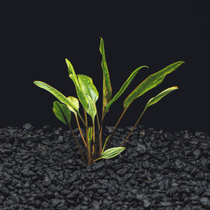 Cryptocoryne Lutea likes to stand up, as opposed to flopping over horizontally. Cryptocoryne Lutea requires a bit more light than the typical Crypt. Depending on lighting, either the leaves will grow tall towards the light or more horizontal. Lutea can be propagated by uprooting the whole plant and plucking baby plants from the side of the main root.