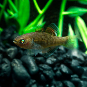 The Empire Gudgeon (Hypseleotris compressa) is a peaceful fish from Australia, south-central New Guinea, and parts of Indonesia. It grows to about 4–5 inches. Males show neon reds, blues, and greens and develop a rounded head, especially when breeding. Females stay more muted in color.