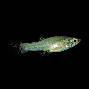 Male Endlers have an amazing variety of colors. They are generally smaller than a guppy as they grow to the adult size of 0.75 to 1 inch for the male. Females are larger, usually growing to 1 to 1.25 inches. They look a lot like a small guppy, but they should not be kept with guppies or other livebearers if the young are to be sold since they will hybridize. They are omnivores so they eat meat as well as vegetables. They are easy to care for an make a great addition to a nano aquarium.