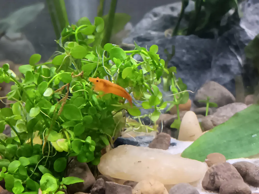 Orange Sunkist Shrimp are great beginner aquarium shrimp and feature a vibrant orange coloration. They are very hardy shrimp that we keep in our shrimp room. Orange Sunkist Shrimp is the name most hobbyists use for all shrimp with a bright orange hue. While most Orange Sunkist pet shrimp look similar, they come from several different genetic lines and backgrounds. Our Orange Sunkist shrimp have a fantastic orange color and their line comes from high-quality breeding stock. They are almost solid orange, while some can show the rili pattern. The care for Orange Sunkist Shrimp is typical of most Neocaridina species. They do not require special attention and tend to be accepting of a multitude of water parameters