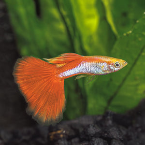 The Rainbow Guppy is a vibrant fish that brings an array of colors to your aquarium. With its shimmering red and white scales, it adds a dynamic visual appeal as its colors shift in motion. These fish are perfect for hobbyists looking to create an engaging and diverse underwater environment.